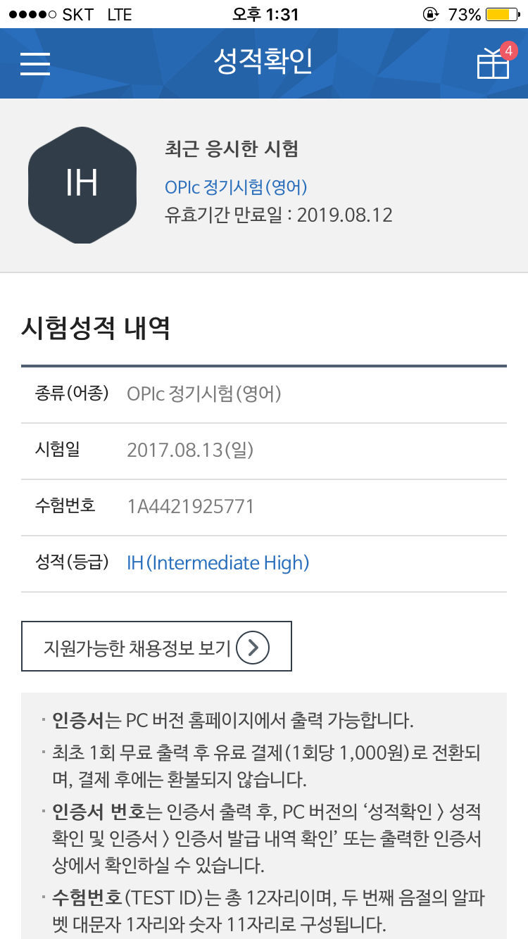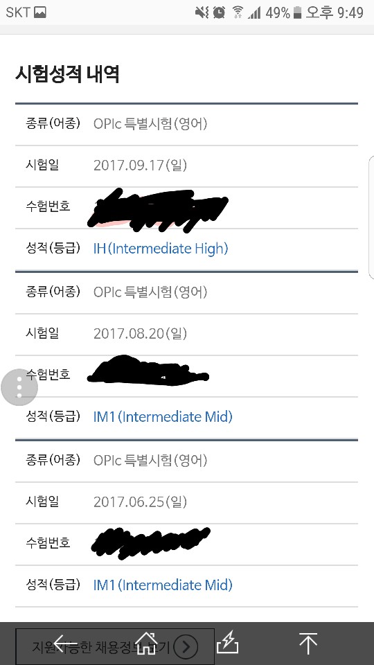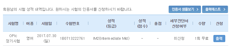 첫 시험이라 자신이 없어 IL은 딸 수 있을까 걱정 많이 했는데, 넉넉하게 IM2를 받아 영어에 대한 성취감을 처음 느꼈습니다.
