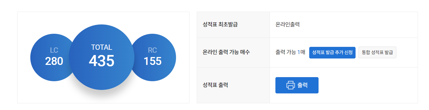 유인아 선생님 강의 짧게 듣고, 제 실력 테스트겸 토익응시 했는데, 점수가 상당히 잘나와서 놀랐어요! lc에 흥미가 생길거 같아요:) 이제 lc 600반 강의듣고 rc만 조금더 손보면 700점도 가능할거 같아요! 희망을 주셔서 너무 감사합니다!!!