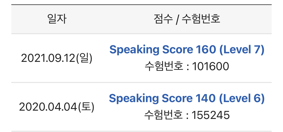 수강 당시 목표는 레벨 7만 나와도 성공이겠다 하는 생각이었습니다. 한국식 교육을 받았던 터라 듣고 읽고 쓰는 것은 어느정도 익숙하지만 말하는 것은 정말 못하고 두려워했던 저였습니다. 머릿속으로는 말할 것을 다 생각해 놓지만 막상 말을 해야 하는 상황이 오면 당황해서 입도 못 떼고 벌벌 댔었습니다. 하지만 이번에 소라쌤 토스 수업을 수강하며 많은 표현들을 배울 수 있게 되었고, 꾸준히 영어로 말하는 것을 연습하며 영어에 대한 두려움을 없앨 수 있었습니다. 그 결과 레벨 7만 나와도 만족했을 것이라 생각했던 저는 당당하게 레벨 8을 얻을 수 있었습니다. 지금까지 상상도 못했던 레벨 8이라는 성적을 단 60일만에 딸 수 있었다는게 정말 기적 같아요 ㅠㅠ 이게 다 파고다 인강 덕분입니다ㅠㅠㅠ 성적이 잘 나온 것도 너무 뿌듯하고 좋은데 영어에 대한 두려움이 없어져서 완벽한 영어 문장을 구사할 수는 없어도 이젠 머릿속으로만 생각하지 않는다는 것이 무엇보다 뿌듯합니다ㅠㅠ