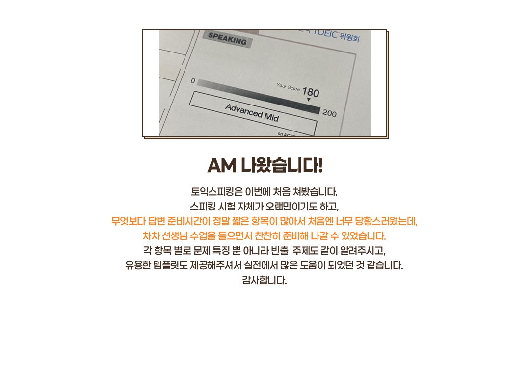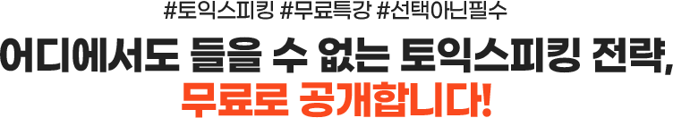 - 자세한 강의 구성은 각 수강신청 영역 [강의 자세히보기]를 통해 확인하실 수 있으며, 수강신청은 토익스피킹 단기PACK 랜딩 내에서 구매하셔야 할인된 가격으로 구매 가능하니 이 점 유의하시어 수강신청해주시기 바랍니다.